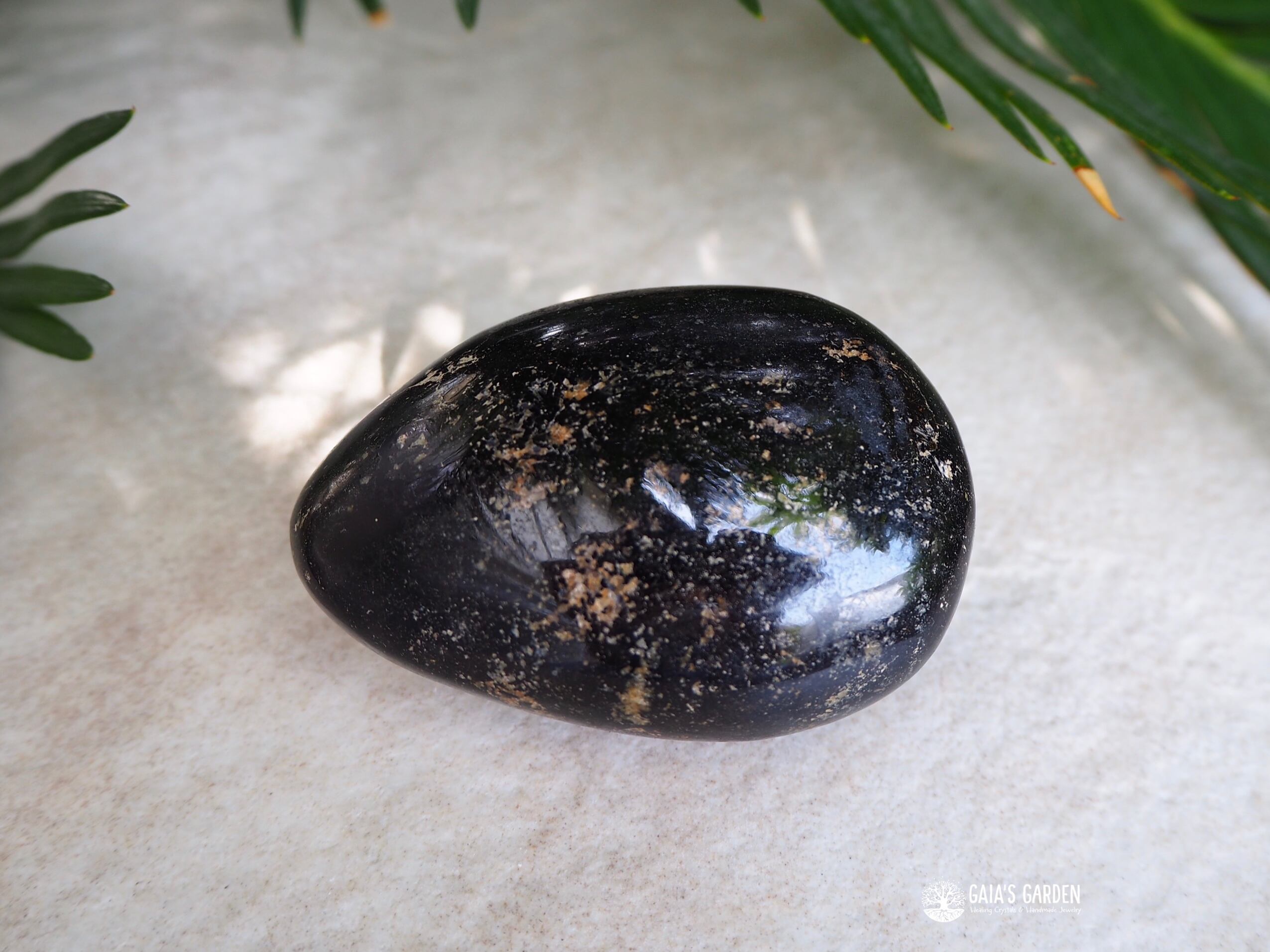 ブラックトルマリンは、結晶状の原石の状態で出回ることが多く、このようにまあるく研磨されたものは珍しいです。